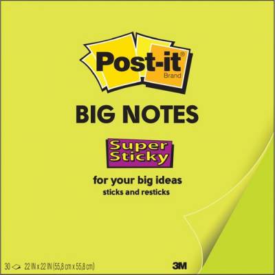 Think big and ignite your creativity with Post-it Super Sticky Big Notes. Bright, colorful notes are designed for horizontal collaboration with sheets that can be displayed on smooth, vertical surfaces. Post-it Super Sticky Big Notes stick and restick to help you be more productive. Capture your notes, to-dos and reminders so they are not missed. Use it with Post-it Notes and Post-it Rolls and visualize your ideas taking shape. Post-it Super Sticky Big Notes pad includes 30 sheets.